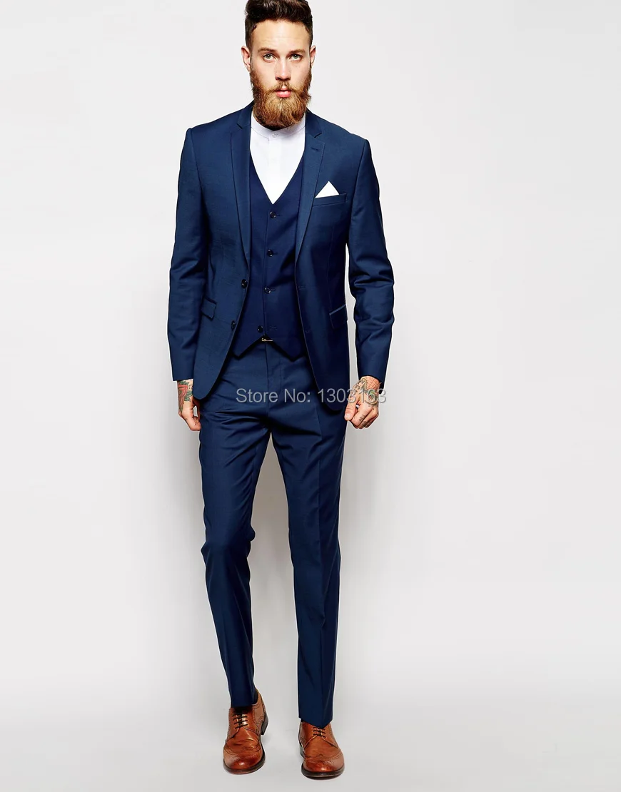 The perfect jacked, pants, and vest combo effortlessly blends together to reach the heights of fashion, style, and class. You'll receive email and feed alerts when new items arrive. Shop the top 25 most popular 1 at the best prices! 3pc solid color steel blue tailored fit flat front pants 2 button mens suit with double breasted vest super 150's extra fine italian wool sku: Men's dress vest textured knit 5 button down suit vest navy medium. Men 3pc vest suit royal diamond window pane english plaid peak lapel af523 navy. So most of people who want to look confident prefer navy blue. Go with our favorite combo and pair your navy blue suit with brown dress shoes for a classic look. A navy blue suit is essential in a modern man's wardrobe. A pinstriped suit is more limited, and should only be worn with clothing in patterns of a different scale. As far as style goes, try oxfords , loafers, or monk straps. Our range of blue and navy suits, trousers and jackets are perfect for work, events or that big occasion. Suits that are complementary pieces of other popular men apparels of recent times, grab the gentelmen's attention all over the world and seen on the fenomenal social media platforms.